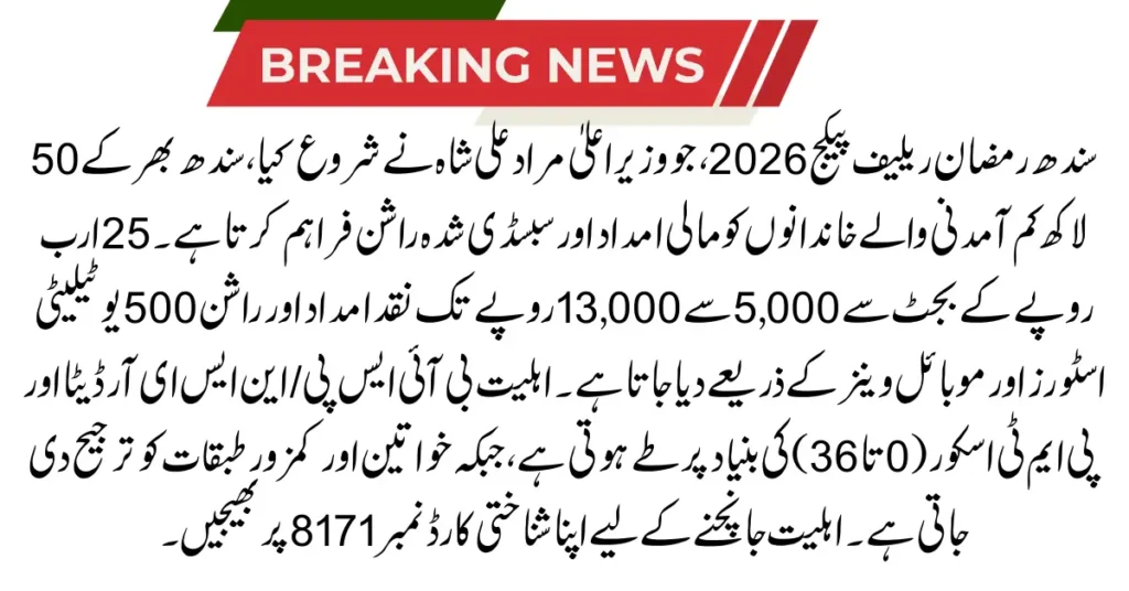 CM Sindh Ramzan Relief Package 2026 – Subsidized Ration, Cash Aid & Eligibility Details